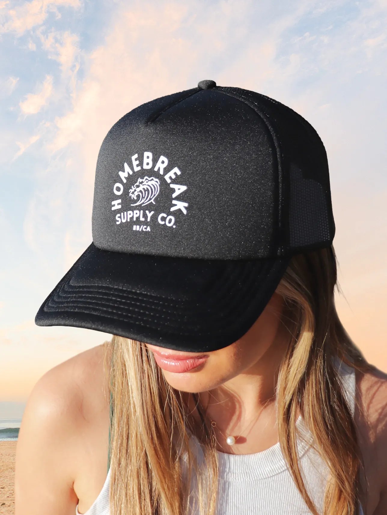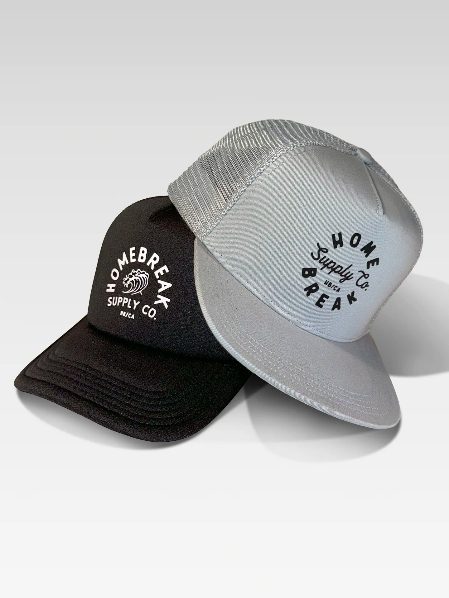 The Homebreak Trucker Hat features our Homebreak badge or Wave badge design that stands out. Built on a high-profile trucker silhouette with a flat peak and structured fit, it combines a durable 100% cotton, or foam front with a breathable mesh back to keep you cool. Finished with an adjustable snapback closure for all-day comfort. One size fits most.